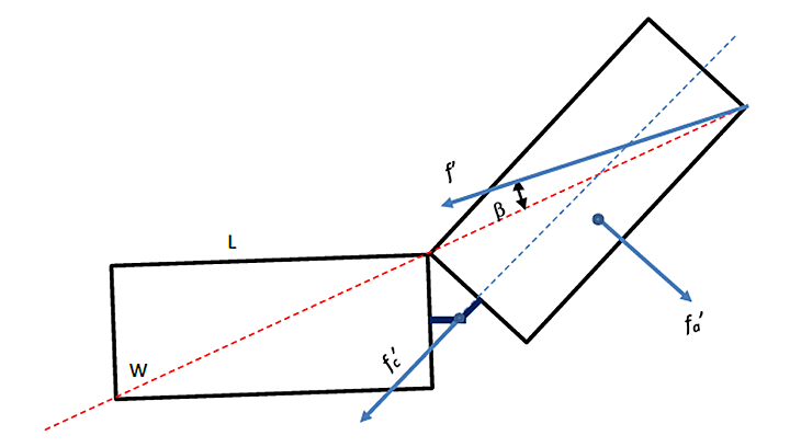 - β is the angle of applied force by the remaining train with respect to the longitudinal axis of the column of derailed tank cars.