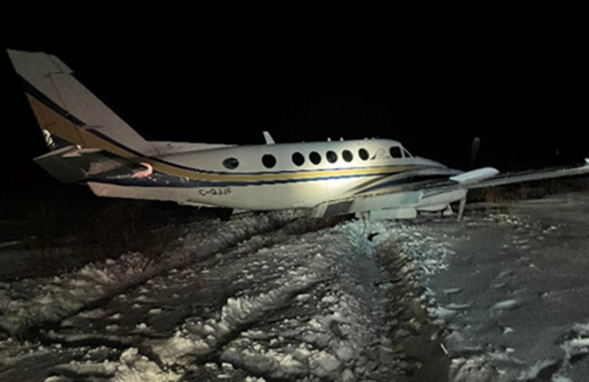 On 04 November 2023, the Beech King Air A100 aircraft (registration C-GJJF, serial number B-123), operated by Propair Inc., was conducting a medical evacuation flight under instrument flight rules, from Rouyn-Noranda Airport (CYUY), Quebec, to Wemindji Airport (CYNC), Quebec, with 2 pilots and 3 mission personnel on board. At 0227 Eastern Daylight Time, the aircraft touched down slightly left of the centreline of Runway 28 at CYNC. The left propeller and main landing gear then struck a snow windrow that extended along the entire length of the runway. The aircraft exited to the left of the runway and came to rest in the snow approximately 45 feet from the edge of the runway. One member of the mission personnel received minor injuries. The aircraft’s left propeller and engine were damaged, as were the flaps on both sides.