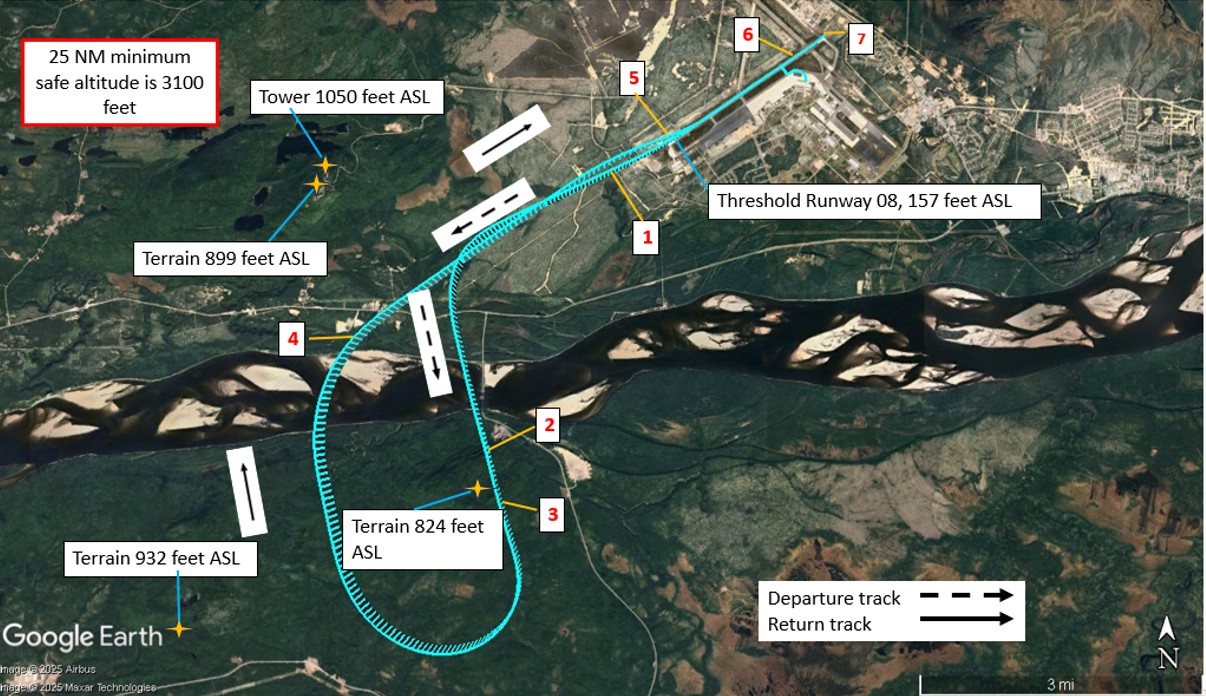 Figure 1. Occurrence flight profile (Source: Google Earth, with TSB annotations)