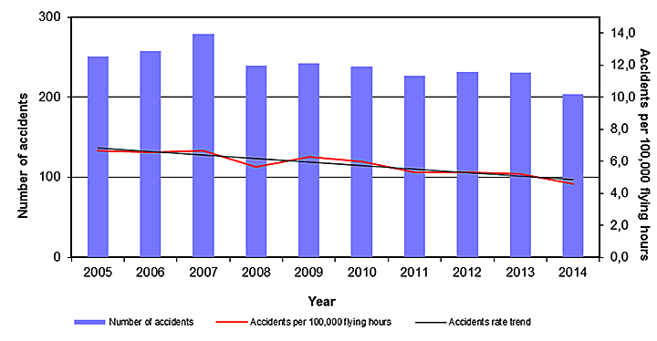 Year | Number of accidents | Accidents per 100,000 flying hours |