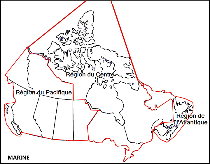 La région du Pacifique comprend la Colombie-Britannique, l'Alberta, la Saskatchewan, le Manitoba et les Territoires du Nord-Ouest et le Yukon au sud du 70e parallèle, ainsi que les eaux adjacentes à ces provinces et territoires.