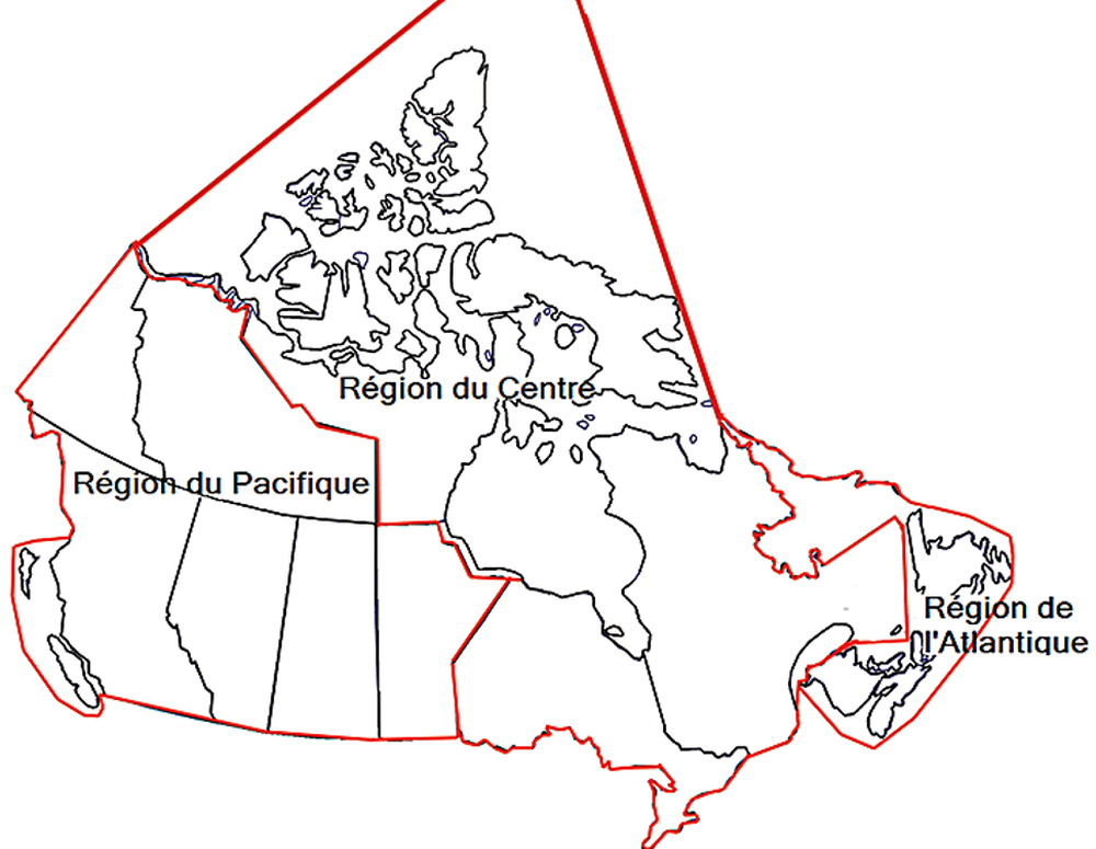 La région du Pacifique comprend la Colombie-Britannique, l'Alberta, la Saskatchewan, le Manitoba et les Territoires du Nord-Ouest et le Yukon au sud du 70e parallèle, ainsi que les eaux adjacentes à ces provinces et territoires.