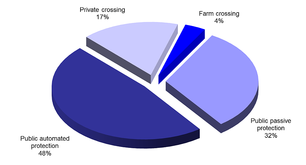 One crossing accident resulted in a release of dangerous goods (from a tanker truck struck at a level crossing).