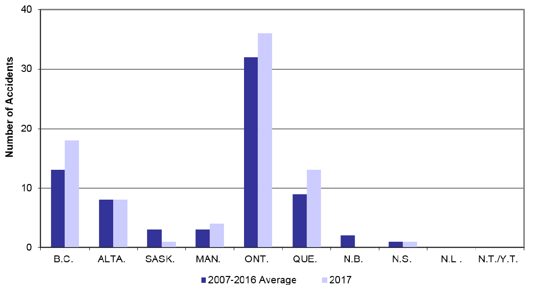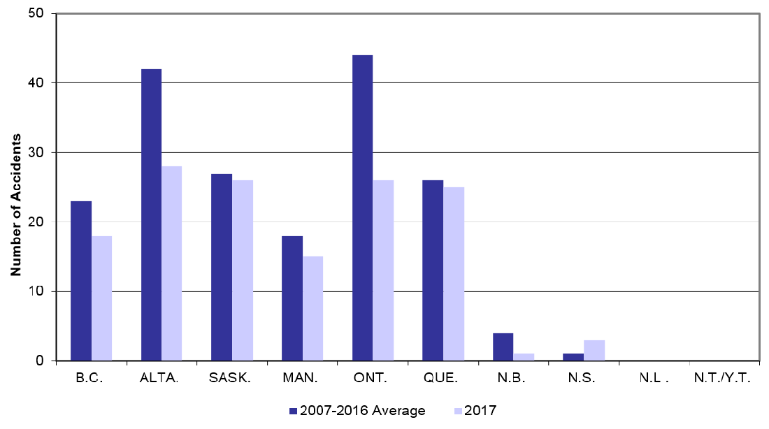 The 2017 data were collected according to the reporting requirements described in the TSB Regulations in force during that calendar year.